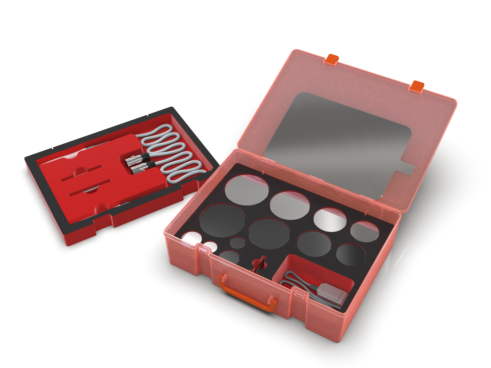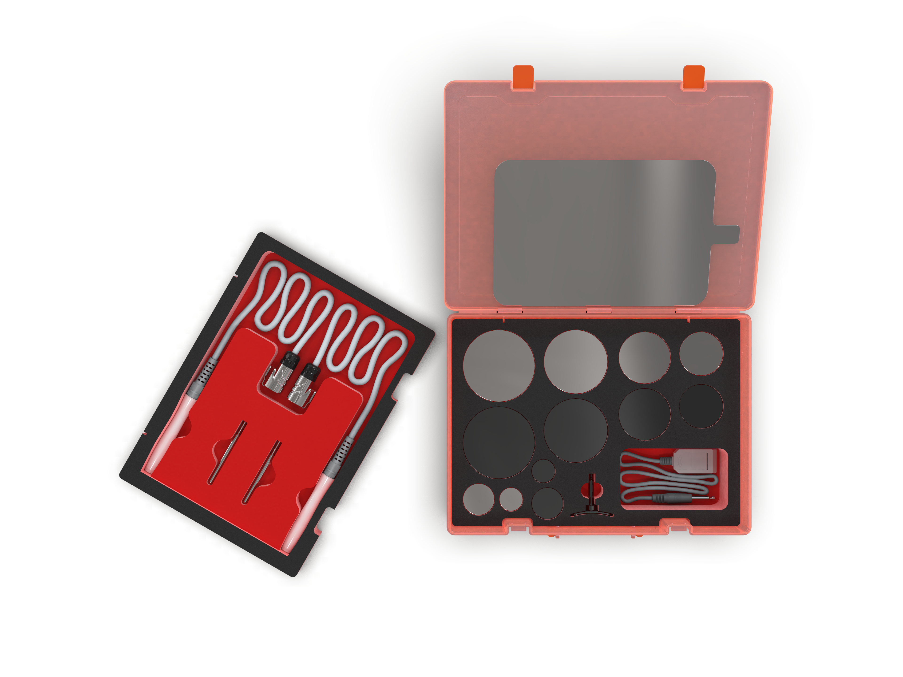 14 electrodos intercambiables con sistema sin roscas para cambio rápido y seguro. Diseño ergonómico balanceado para máximo control y precisión.